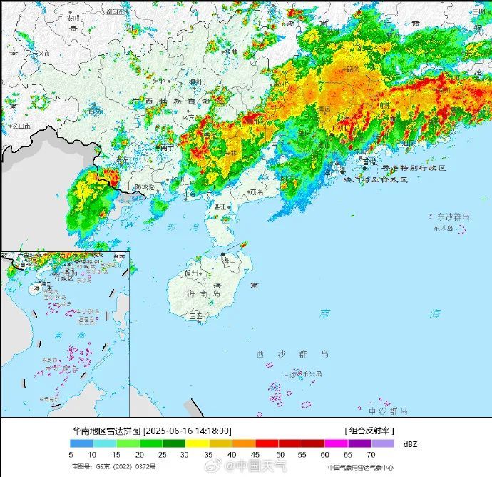 虽然台风“蝴蝶”已停编,但带动季风上岸影响广东,昨日夜间至今日上午粤西茂名、阳江和肇庆、清远等地出现暴雨到大暴雨,局地特大暴雨。其中茂名最大6小时雨量333.5毫米、最大小时雨强121毫米;其余市县出现了分散(雷)阵雨局地暴雨或大暴雨。